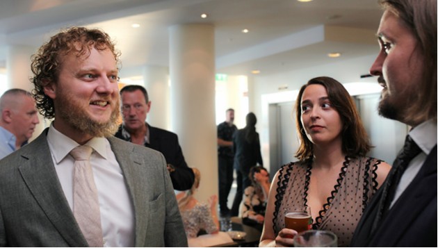 TAR OVER: Lars Peder Fotland blir ny leder for YTF Funksjonær. Her er Fotland på landsmøtefesten til YTF sammen med sin kone, Aikaterini Almpani og nestleder i avdeling 172, Nils Joakim Heyerdahl Reichelt. Foto: Øyvind Henriksen